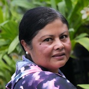 Cuidadora. Atiende las orquídeas con dedicación.